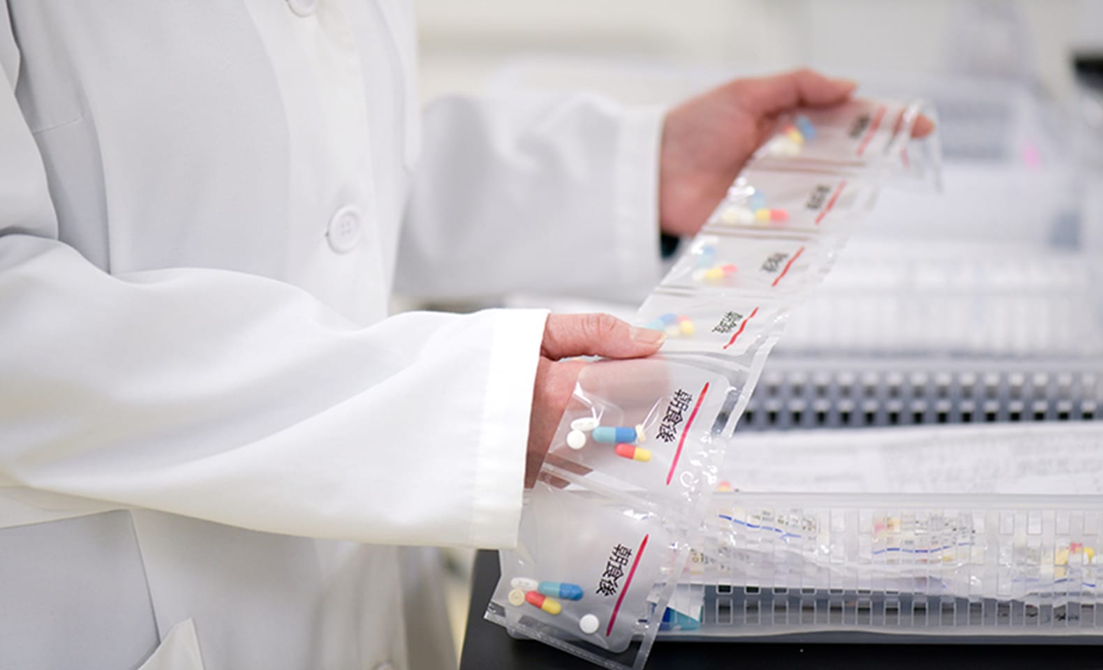 患者様にお渡しするお薬に間違いがないか確認し、調剤ミスの防止につとめます。
